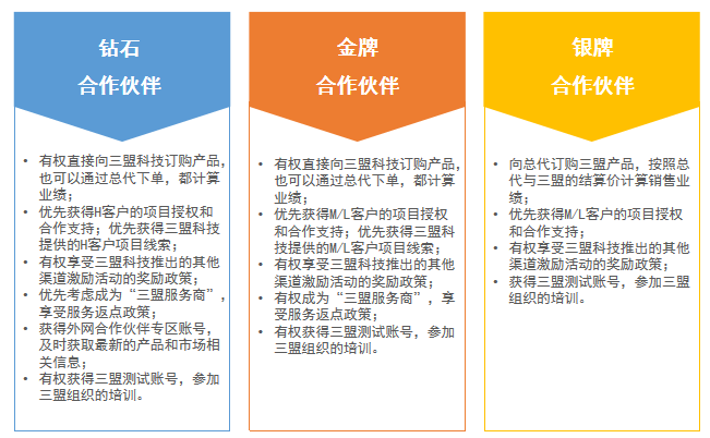 按照技術(shù)應(yīng)用場合的不同,充分考慮客戶項目不同階段及層次的需求,三盟科技為渠道合作伙伴提供了2個場景(售后能力認(rèn)證、解決方案能力),3個等級從助理工程師到專家的的認(rèn)證體系。