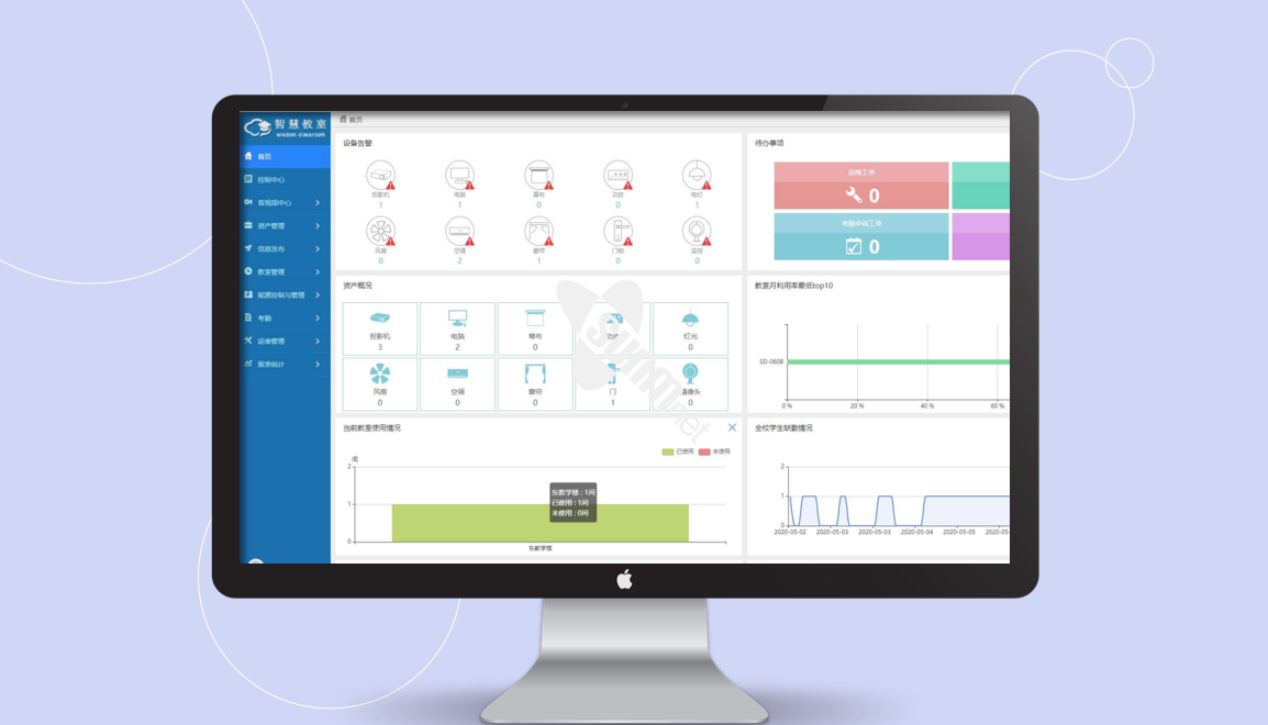 借助智慧教室管理系統的管控,老師可以通過一鍵式操作來完成對整體環境的管理,比傳統教室的人力監管省事多了。