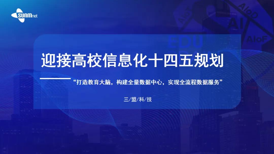 為緊跟“十四五”風向標,面對高校信息化新的挑戰,三盟科技解決方案部總經理陳冬帶來了《迎接高校信息化十四五規劃》的專題分享,助力高校打造教育大腦,構建全量數據中心,實現全流程數據服務。