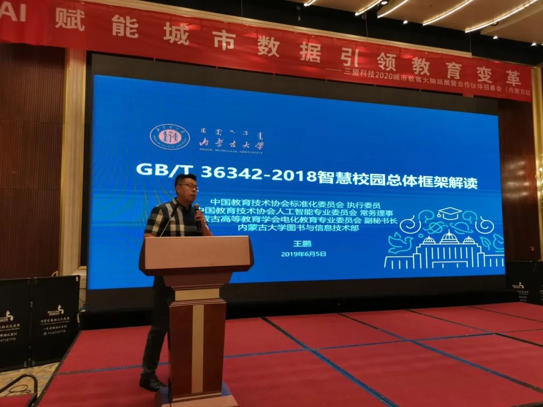 為了幫助合作伙伴更好地理解建設標準要求,推動城市教育大腦落地應用助力建設智慧校園,7月10日,以"AI賦能城市  數據引領教育變革"為主題的三盟科技2020城市教育大腦巡展暨合作伙伴招募會(內蒙古站),特邀中國教育技術協會標準化委員會執行委員、中國教育技術協會人工智能專業委員會常務理事王鵬主任現場解讀智慧校園建設標準,并分享對城市教育大腦的理解,臺下頻現熱烈掌聲。