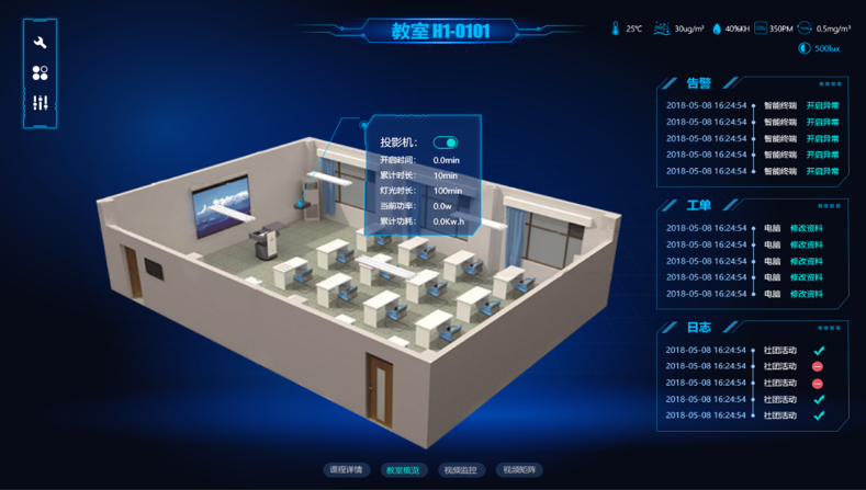 借助智校,管理員不用到教室巡查,就能通過(guò)平臺(tái)遠(yuǎn)程完成設(shè)備控制、環(huán)境控制、信息發(fā)布等工作。還可按照課表設(shè)置設(shè)備定時(shí)開(kāi)關(guān),實(shí)現(xiàn)設(shè)備的無(wú)人值守。