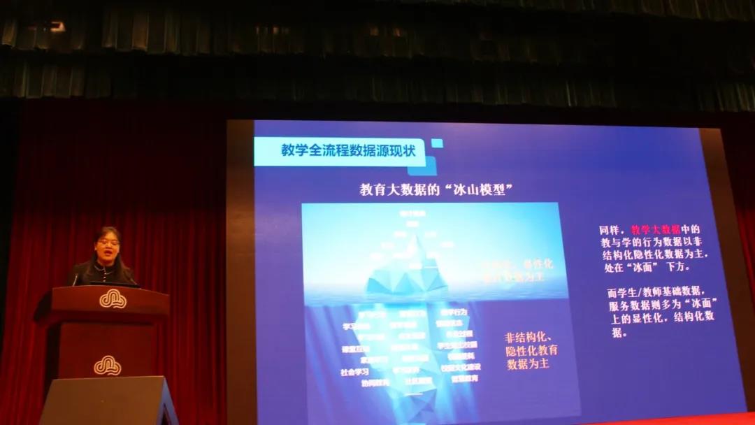 會上,三盟科技解決方案部產(chǎn)品總監(jiān)李丹宏作了《基于教學全流程的數(shù)據(jù)及教學大數(shù)據(jù)應用分析》的報告。她指出,當前高校教育數(shù)據(jù)現(xiàn)狀呈現(xiàn)“冰山模型”,即以學生/教師基礎(chǔ)數(shù)據(jù)為主的服務數(shù)據(jù)多為“冰面”上的顯性化數(shù)據(jù);而教與學過程中的行為數(shù)據(jù)以非結(jié)構(gòu)化隱性化數(shù)據(jù)為主,處在“冰面”下方。如何采集教學全流程數(shù)據(jù),激發(fā)數(shù)據(jù)價值,真正提升教學質(zhì)量是關(guān)鍵。