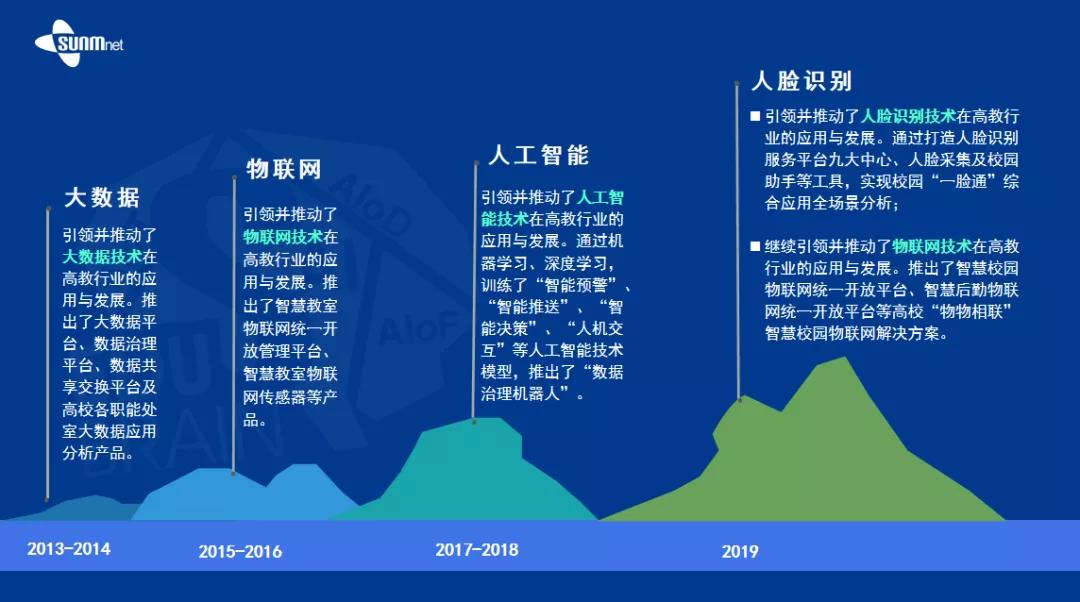 2014-2015年,在大數據技術領域,推出了AIoD大數據平臺、AIoD數據治理平臺、AIoD數據共享交換平臺及高校各職能處室大數據應用分析產品。