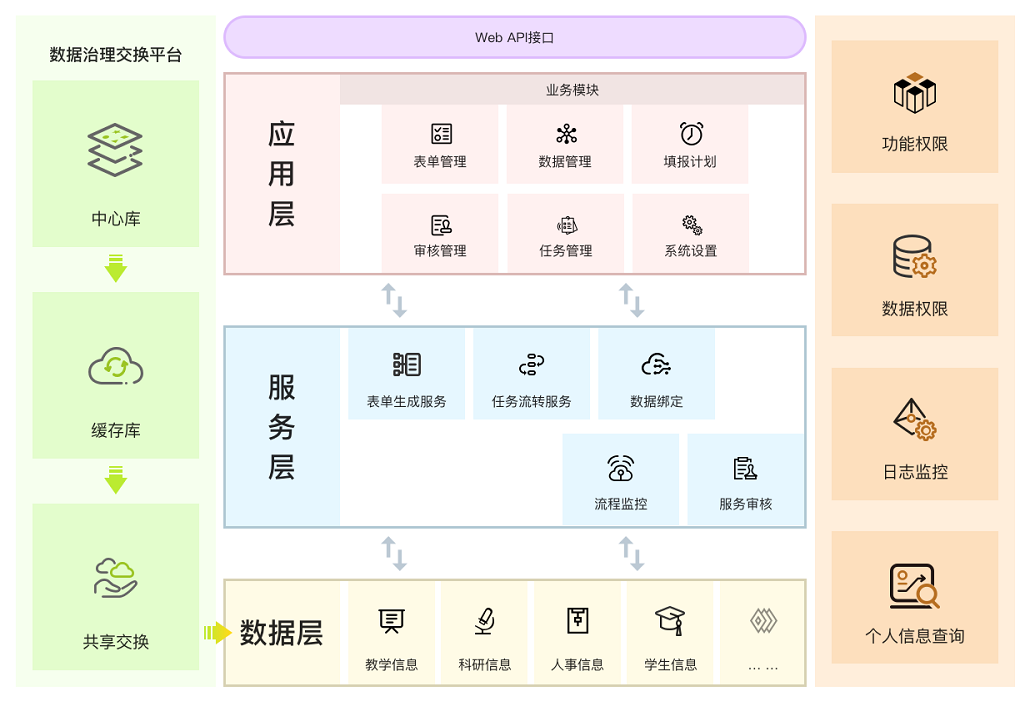 那么,如何做到保障學(xué)校數(shù)據(jù)資產(chǎn)的同時,又能為教師的填報工作減負?提升學(xué)校的數(shù)據(jù)采集信息化水平顯然是最有效的手段,通過讓網(wǎng)絡(luò)化填報搭上“大數(shù)據(jù)”的順風(fēng)車,實現(xiàn)“數(shù)據(jù)多跑路,老師不跑路”。