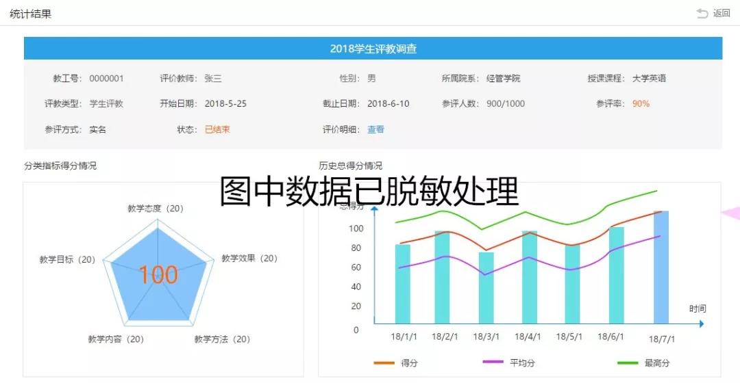 1 支持查看教師評測數據統計分析,可導出統計報表