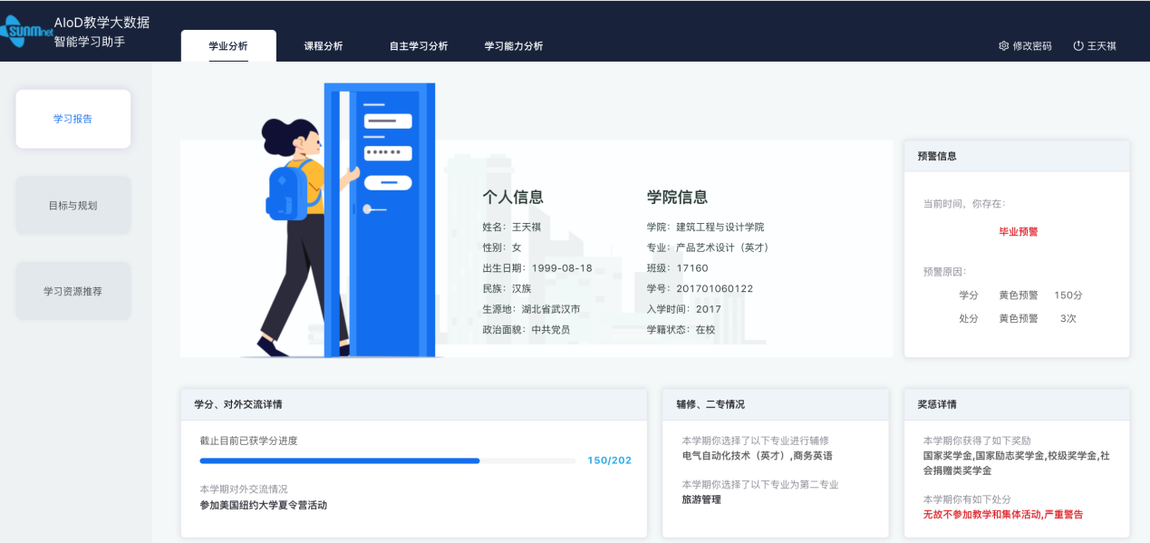 智能學習助手系統堪稱學生的“學習規劃師”,擅長對學生基本信息、學習成績、學習行為、行為軌跡等數據進行綜合分析,構建學生綜合畫像。