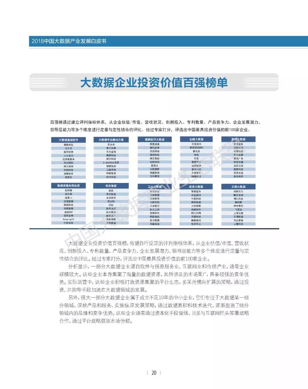 2018中國最具投資價值大數據企業TOP100榜單揭曉