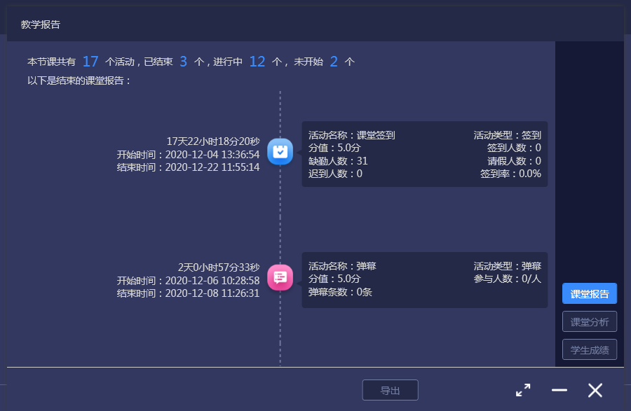 關(guān)于課堂活動時長、參與人數(shù)等指標(biāo)