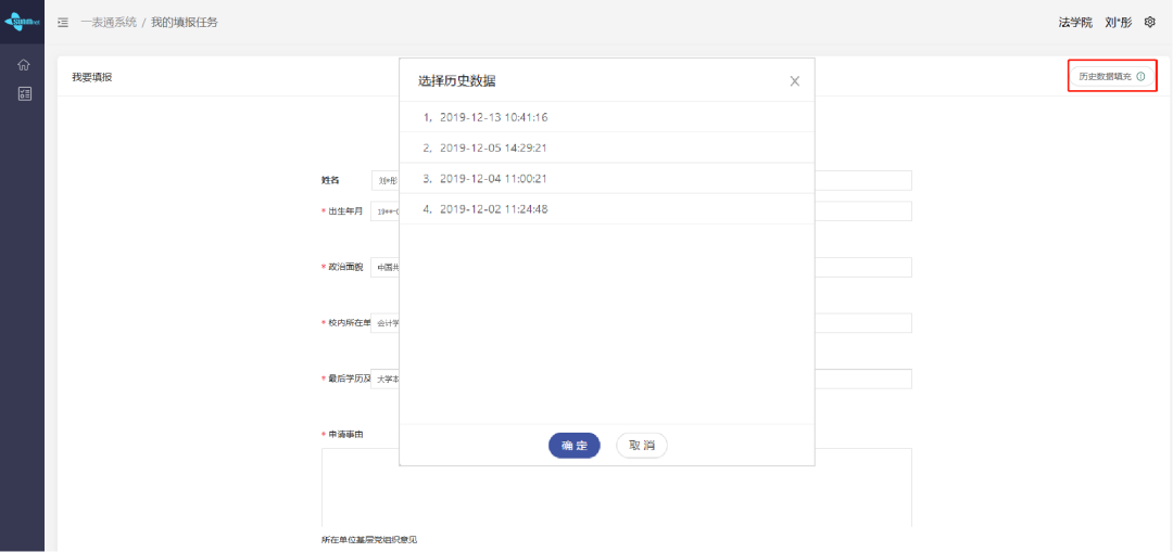 教師在填表時只需點擊“歷史數據填充”,選擇歷史數據,系統自動匹配完成填充。后續僅需完善剩余的主觀內容即可,讓你的填表工作從此“開外掛”。
