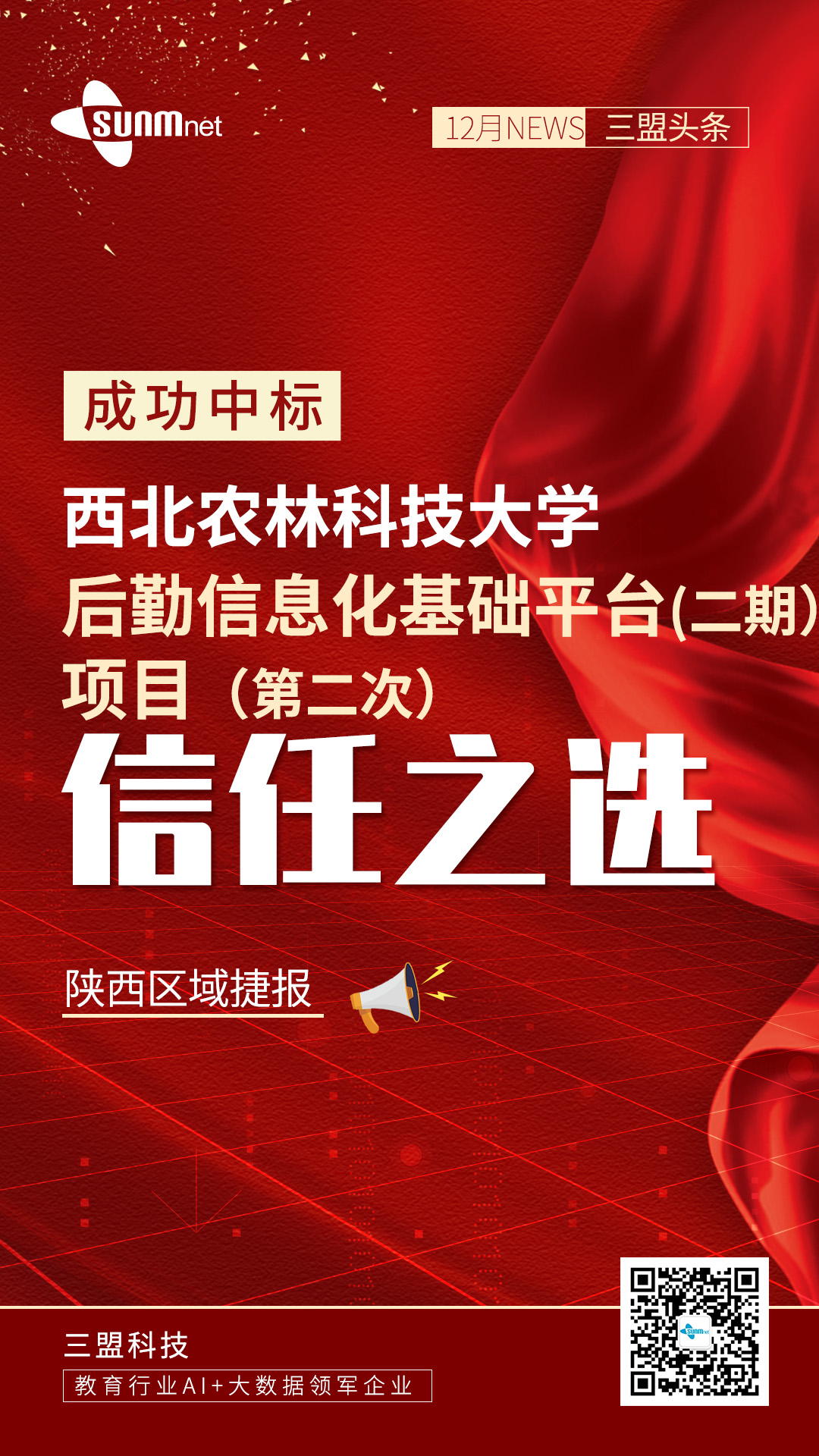 【陜西團隊】成功中標西北農林科技大學后勤信息化基礎平臺(二期)項目,感謝校方對三盟科技智慧后勤方案的高度認可。