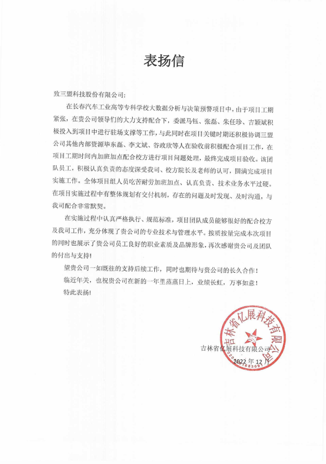收到這些表揚信,三盟科技倍感榮幸,衷心感謝各類院校和合作伙伴的支持與信任!同時,我們也為團隊里每一個默默付出的三盟人而自豪,更為他們力爭做好客戶服務的決心與堅持所打動。