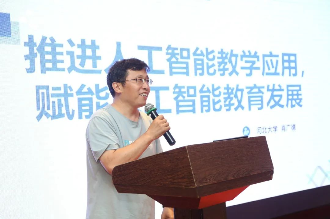 肖廣德作題為《推進人工智能教學應用,賦能人工智能教育發展》的主題報告,圍繞“人工智能教育的內涵、基礎教育階段的人工智能教育內容、推進人工智能教學應用之于人工智能教育的意義”等方面進行介紹。他強調,人工智能的長期發展需要富有創新精神的下一代。為從事AI教育的教師以及對AI科創感興趣的學生提供前沿、多元、易用、連通的學習創作工具,并配以豐富的課程與實踐案例,在普及推廣人工智能科學技術的同時,鼓勵青少年應用 AI 工具進行科學探究與創新。
