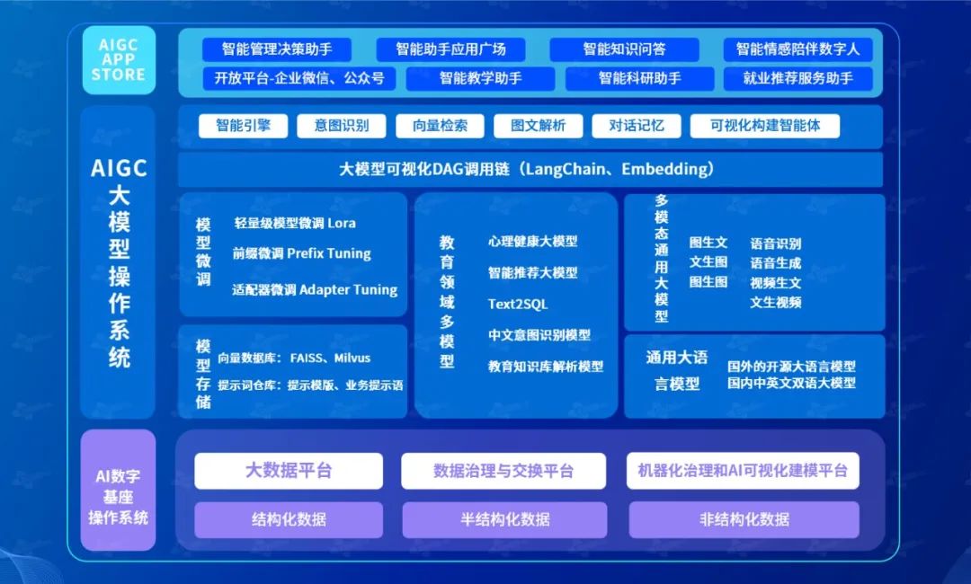 ▲智慧教育AIGC大模型操作系統(tǒng)架構(gòu)圖