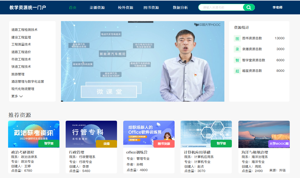 對此,三盟科技推出AIoD 教學資源統一門戶,為高校全面打通學校各教學平臺與資源平臺相關數據,實現各類教學資源的歸集,包括教案、教材、習題、課件、微課、流媒體等。通過集中對各種資源進行存儲和展現,便于教師在線下載使用,提高教學資源利用率。