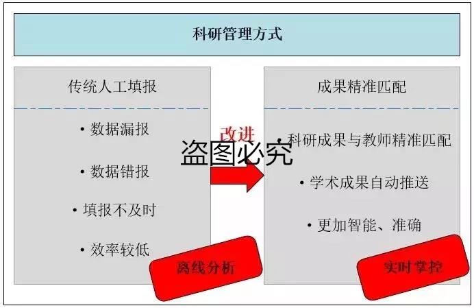 目前各大高校在進行科研管理時,通常采用人工填報的方式記錄科研成果,因此普遍存在錯報、漏報、填報不及時的問題。一直以來,各大高校也在積極探索是否有一種智能方法可以有效解決這些問題。三盟科技大數據學科分析與服務平臺中的科研管理系統板塊,立足高校科研成果現實需求,通過大數據分析和智能算法模型,實現科研成果與教師的精準匹配,完成教師的學科歸屬認定,輔助院校對教師進行績效考核、職稱評定。