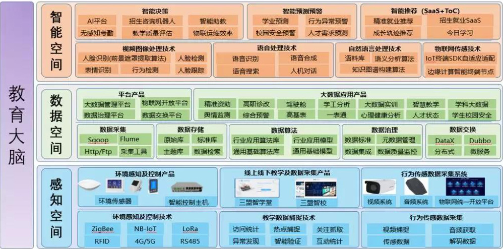三盟科技“教育大腦”戰(zhàn)略,全方位展示了三盟科技自主研發(fā)的全系列智慧教育產(chǎn)品,在產(chǎn)品和技術(shù)上通過(guò)感知空間、數(shù)據(jù)空間、智能空間等三個(gè)空間的布局,實(shí)現(xiàn)從數(shù)據(jù)源采集到智能應(yīng)用的全覆蓋,為教育單位提供成熟的智慧教育整體解決方案。