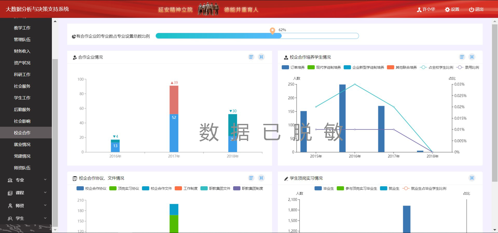 面對日益嚴峻的就業形勢,高校現代職業化教育改革成為必然。而大數據作為這個新時代的技術代表,已然成為驅動高校職業化教育改革的新動力。如何應對大數據背景下職業化教育改革的各項挑戰,這就要求高校必須樹立大數據思維理念,建設數據共享平臺,建立專業數據管理隊伍。三盟科技用大數據,與延安職業技術學院合作建設大數據分析平臺,通過大數據分析與決策系統、內部質量保證監測系統、領導駕駛艙等,打通業務系統,消除數據孤島,推進診改及智慧校園建設工作。