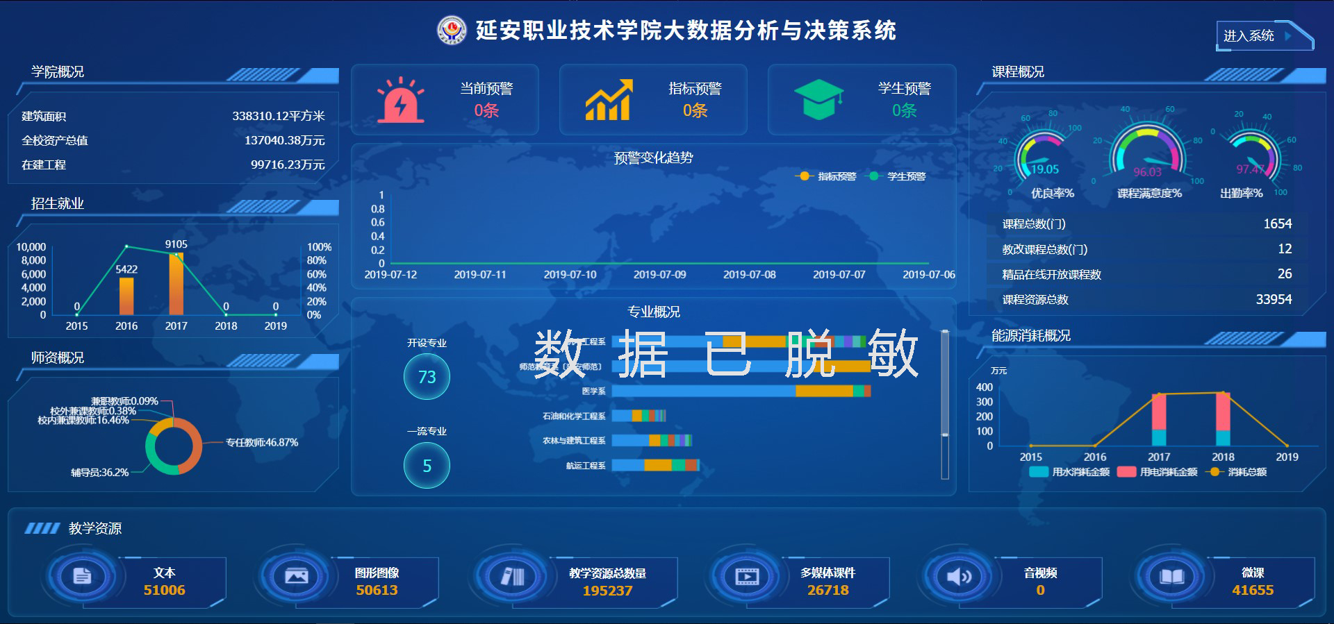 大數據分析與決策系統集合數據采集、數據治理、數據倉庫、分析算法、運維管理等9大功能模塊,對學校各類數據進行綜合分析,消除信息孤島、實現數據共享。