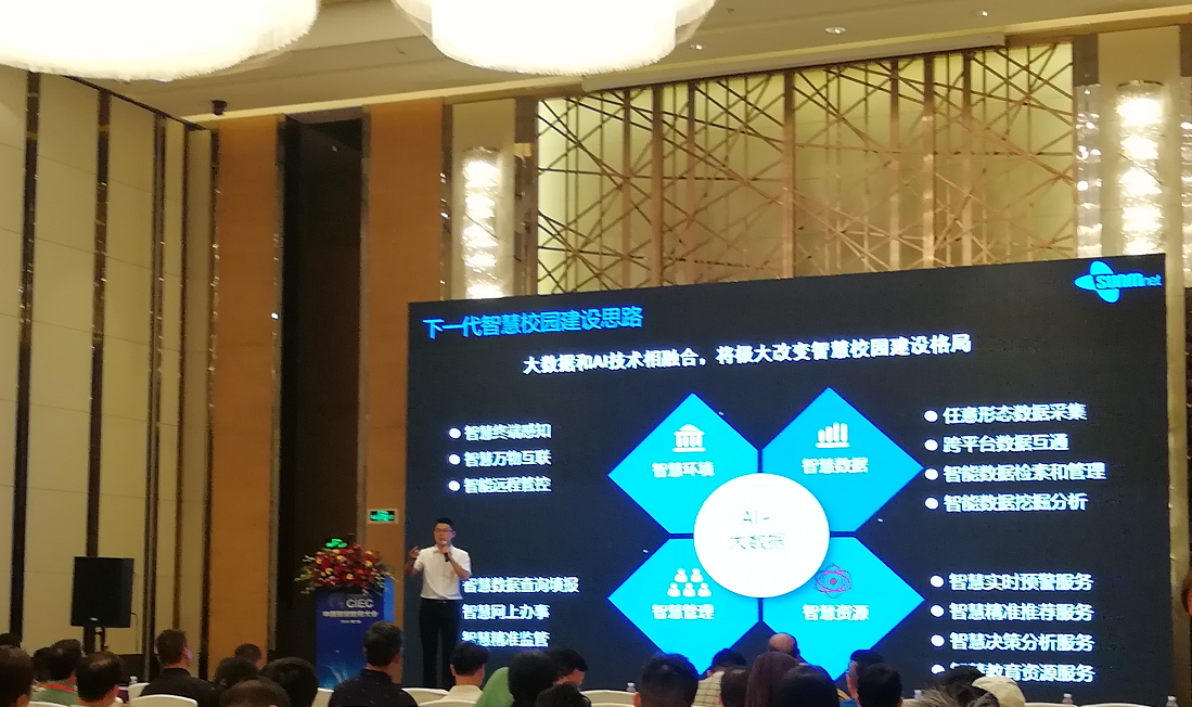 會上,三盟科技大數據產品總監謝長江帶來《基于大數據及人工智能技術的下一代智慧校園建設思路》主題報告,提及智慧校園建設,謝長江表示,大數據和AI技術相融合,將極大改變智慧校園建設格局,三盟科技從智慧環境、智慧數據、智慧管理、智慧資源等四個維度出發,將人工智能、物聯網、大數據、人臉識別、AR/VR等最新技術融入智慧校園建設,并通過全量數據采集、存儲和分析,讓教學過程更有趣、更高效,教學更優質,實現最優地教學模式。