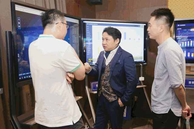 在江西站上,三盟科技普教產(chǎn)品展廳成為技術(shù)交流的重要窗口。財(cái)大主任、南大主任及高信協(xié)會(huì)理事長(zhǎng)蒞臨指導(dǎo),雙方就普教產(chǎn)品的平臺(tái)層部署方案展開(kāi)深入探討。在解決方案部經(jīng)理的陪同下,幾位領(lǐng)導(dǎo)還對(duì)普教產(chǎn)品應(yīng)用端的使用監(jiān)測(cè)作了交流體驗(yàn)。