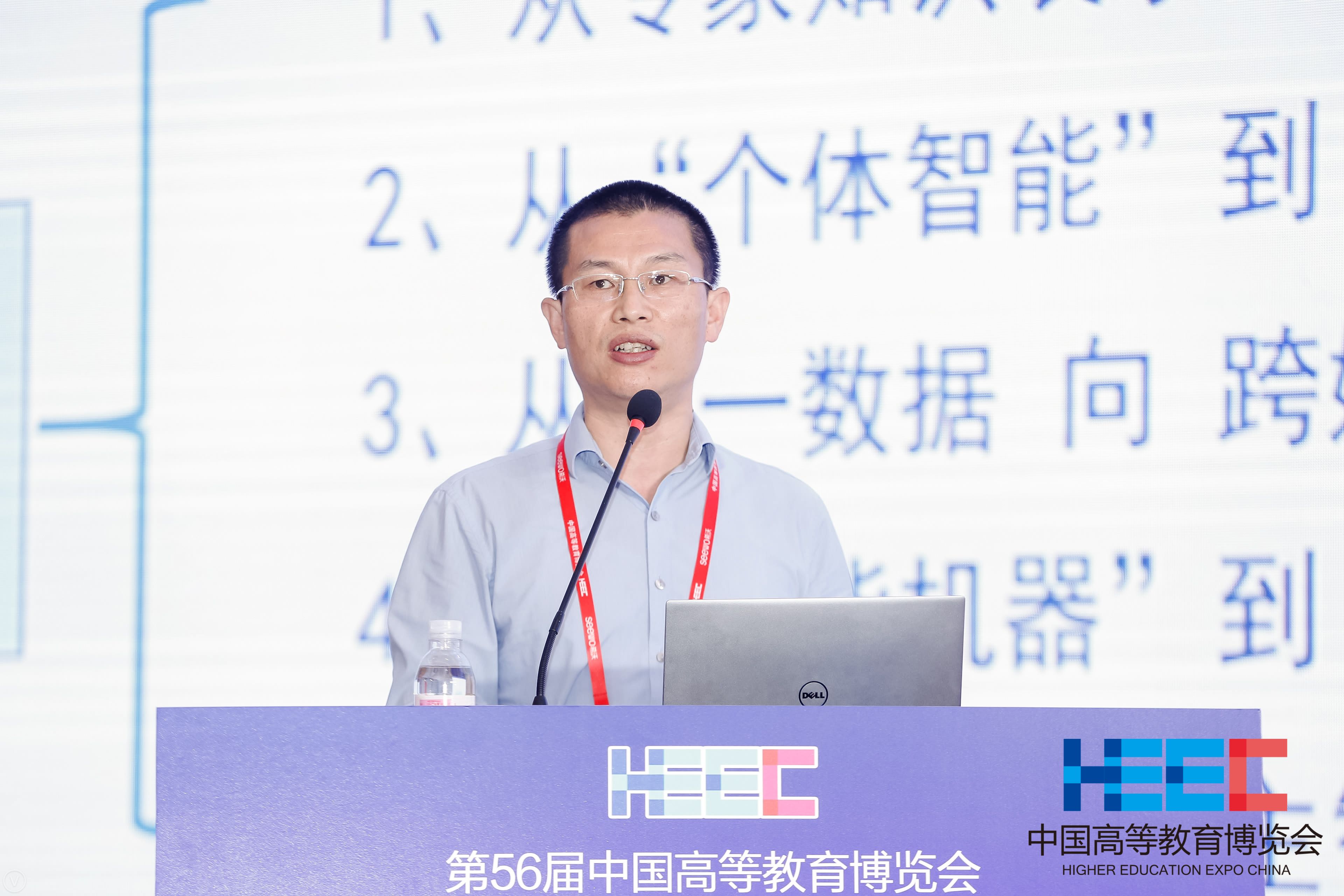 中國高等教育學會副會長、國家民委原副部長級專職委員管培俊,教育部科學技術與信息化司副司長舒華,山東省教育工委副書記、省教育廳黨組副書記、副廳長白皓出席論壇并致辭。中國工程院院士、清華大學網絡研究院院長吳建平,華中師范大學副校長夏立新,中國海洋大學副校長李巍然,常熟理工學院黨委書記朱士中,中國教育技術協會人工智能專委會副理事長魏廣平,中山大學校長助理王帆,西安交通大學教授田鋒分別作專題報告。