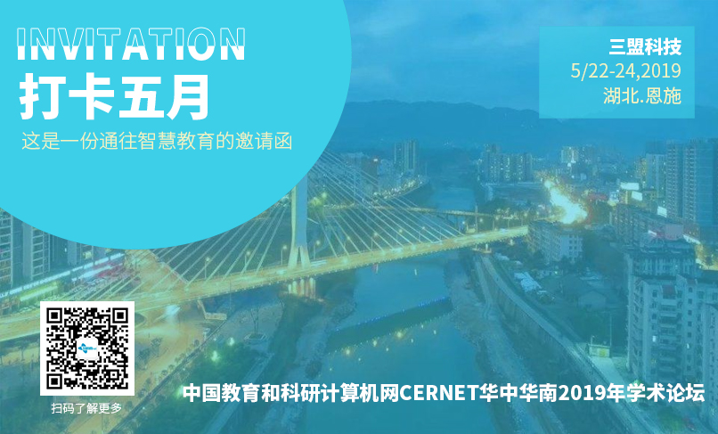 2019年5月22日-24日,“中國教育和科研計算機網CERNET華中華南2019年學術論壇”在湖北省、廣東省、河南省、湖南省、廣西省、海南省、深圳市教育主管部門和CERNET華中地區(qū)網絡中心、CERNET華南地區(qū)網絡中心的共同指導下,于湖北恩施隆重召開。作為中國教育大數(shù)據(jù)、人工智能領軍企業(yè),教育行業(yè)新一代信息技術應用創(chuàng)新領導品牌,以及智慧校園建設整體方案供應商,三盟科技受邀參加本次會議并發(fā)表重要演講。