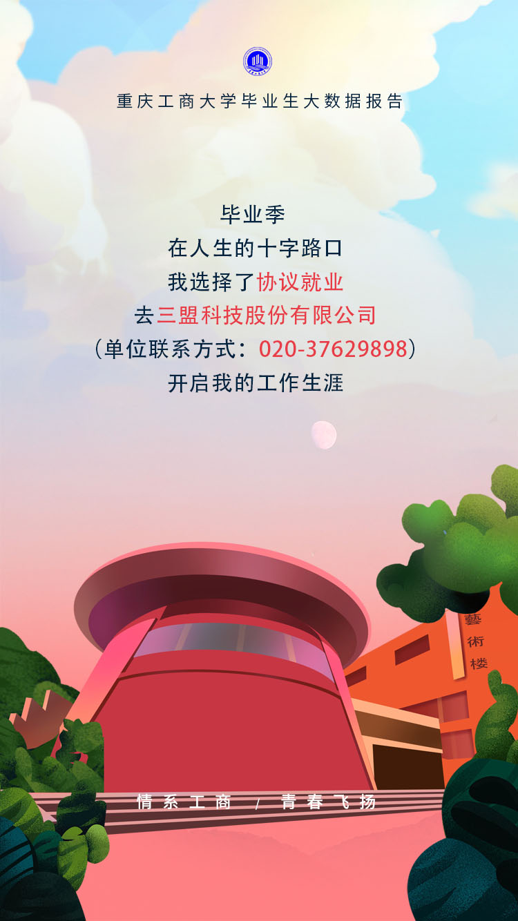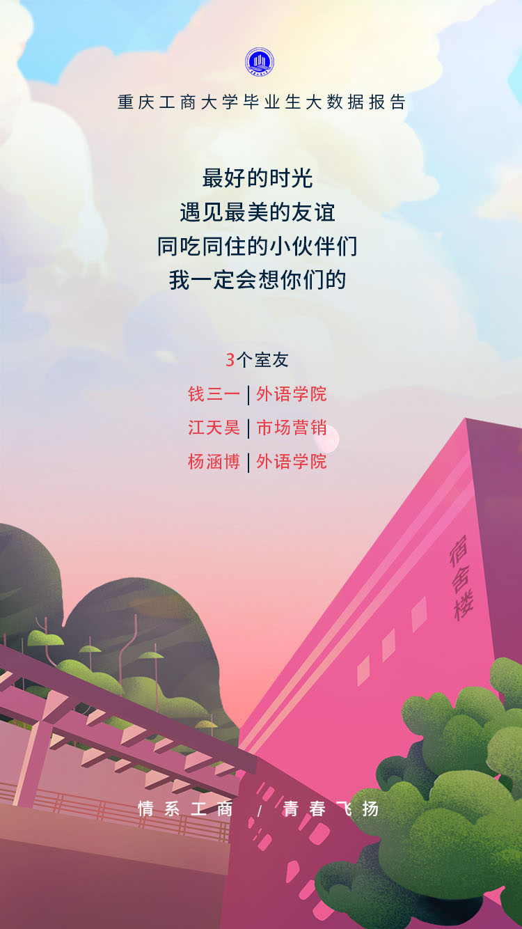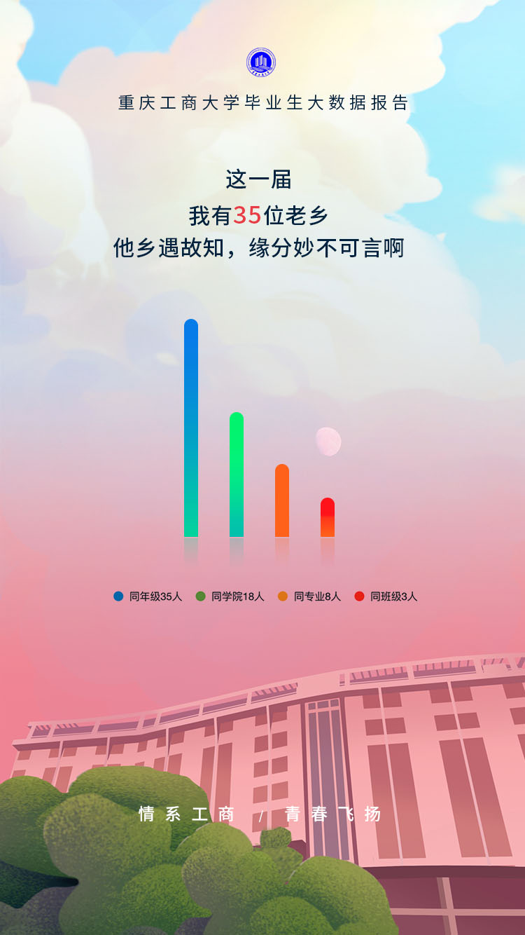 這是三盟科技為重慶工商大學提供的大數據學生服務子模塊“畢業生畫像”,記錄下屬于每位學子生活和學習的點滴數據,最后用數據報告的形式,為各位學子送來一份特別的畢業禮物——再遇重慶工商大學,再遇這四年的你。