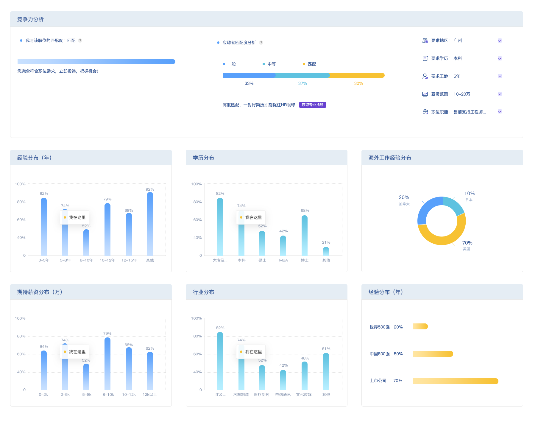 提供學生動態求職分析、雇主實時招聘分析、行業發展趨勢分析、市場人才需求趨勢分析