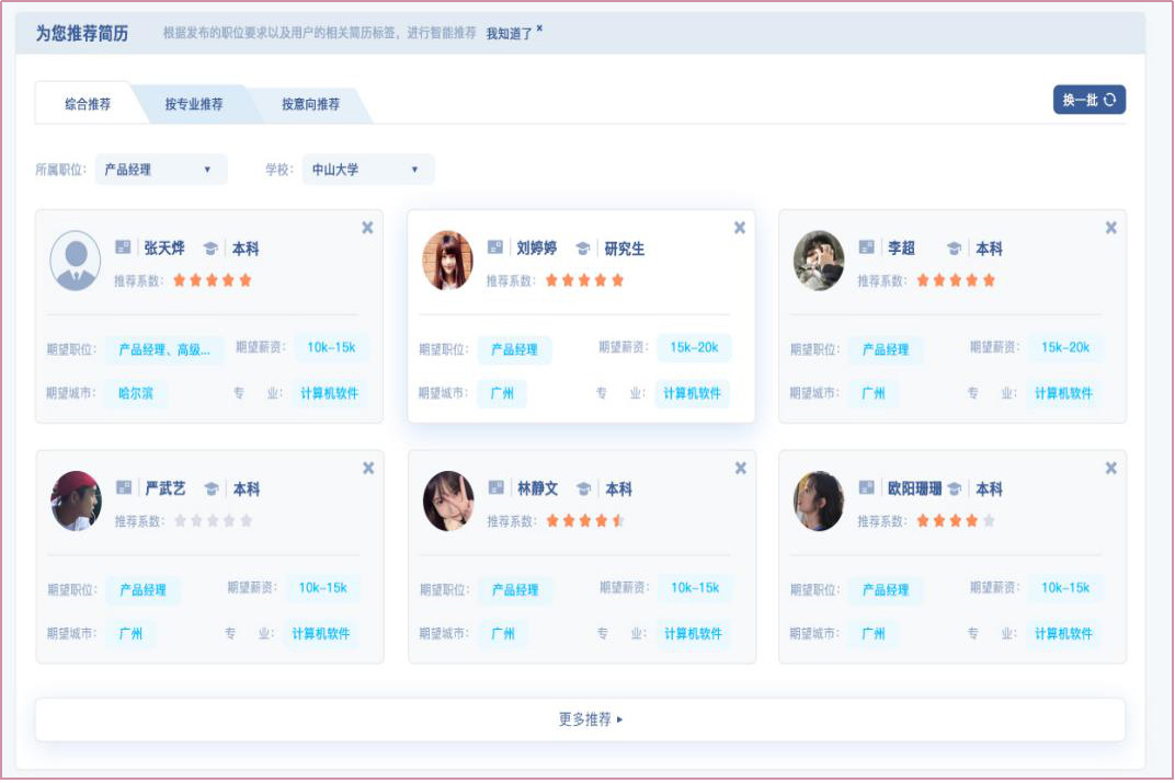 采用大數據+AI的技術,實現人才與崗位的精準雙向推薦功能