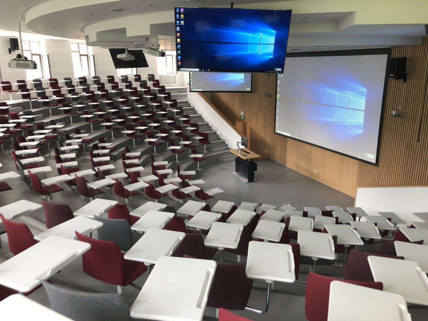 清華大學東階梯教室以頂層設計為指導思想,整體規劃,融合了三盟科技管控系統、錄播互動系統、投顯系統及擴聲系統等,創造智慧學習環境,實現信息技術與教學過程深度融合與創新,實現“無死角”教學。