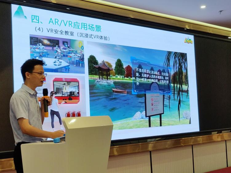 三盟科技普教系統(tǒng)部AR/VR產(chǎn)品總監(jiān)劉長華帶來了“裸眼AR/VR賦能K12智慧教育”主題報告。他從“元宇宙”的概念延伸至AR/VR虛擬現(xiàn)實(shí)技術(shù)在語文課堂、科學(xué)課堂、實(shí)驗(yàn)課堂、創(chuàng)客課堂等實(shí)際場景的應(yīng)用,指出AR/VR技術(shù)助力現(xiàn)代教學(xué)模式深度變革。